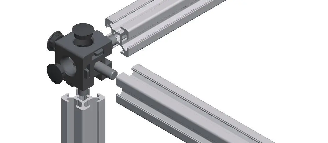 Würfelverbindersatz 3D mit Abdeckkappe Aludruckguss blank